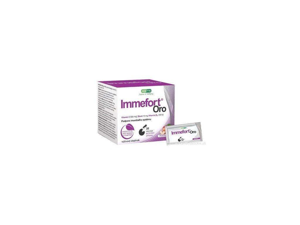 Immefort Oro je perorální prášek obsahující vitamín C, zinek a vitamín D3.