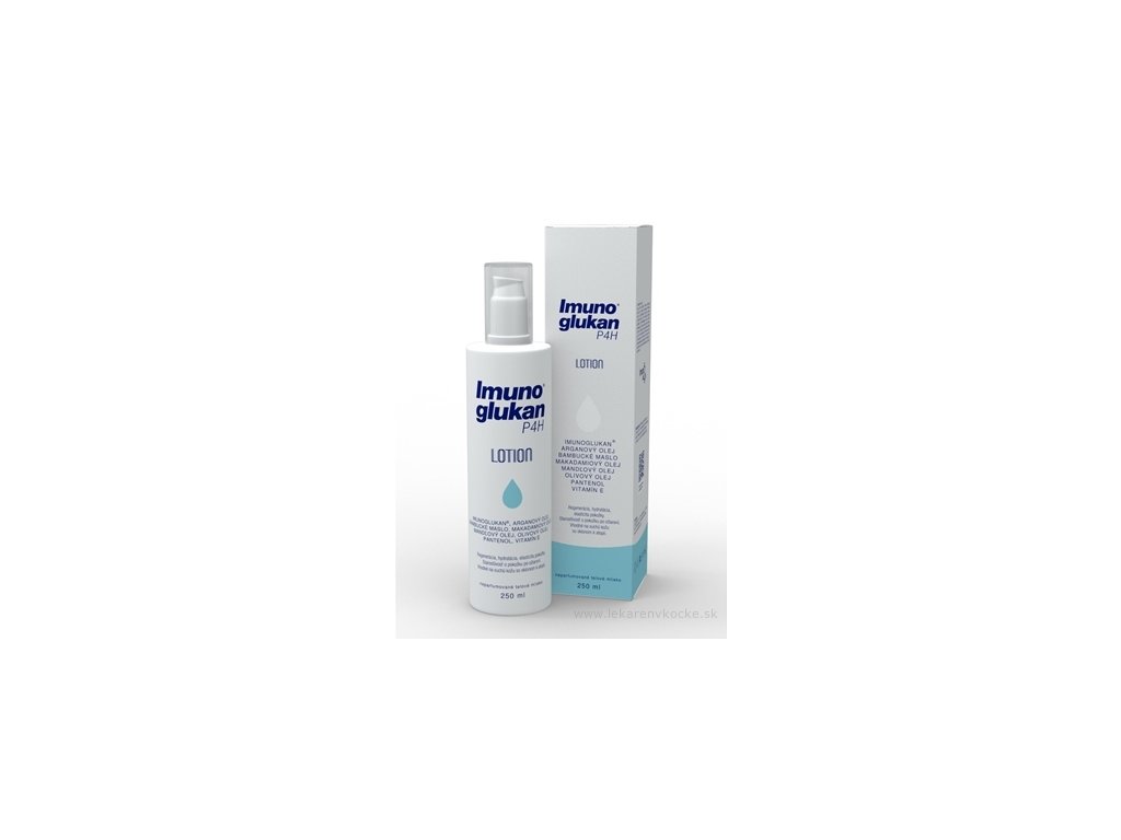 Kosmetický přípravek. Tělové mléko vhodné pro regeneraci, ochranu a udržování dobrého stavu kůže. Jeho hlavní účinnou složkou je přírodní Imunoglukan®, získávaný patentovanou technologií. Imunoglukan® představuje komplex biologicky aktivních polysacharidů s majoritním zastoupením beta-glukanu pleuran, který je znám jako aktivátor důležitých kožních buněk. Tělové mléko Imunoglukan P4H® lotion dále obsahuje směs přírodních rostlinných olejů (olivový, mandlový, makadamiový), které přispívají k hloubkové výživě pokožky. Spolu s arganovým olejem a bambuckým máslem zlepšují přirozené vlastnosti kůže (bariérovou funkci, vláčnost, elasticitu).