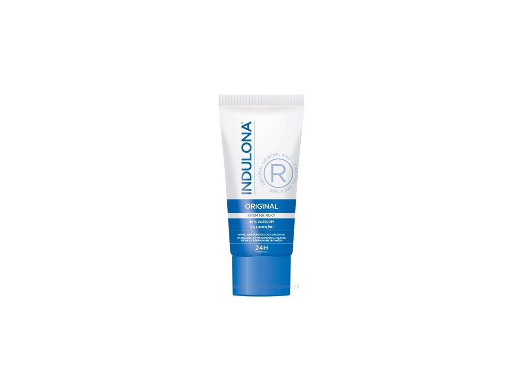 Krém na ruce INDULONA ORIGINAL byl speciálně vyvinut tak, aby poskytl okamžitou úlevu a hydrataci suché, velmi suché a popraskané pokožce. Vysoce hydratační složení s obsahem 45% vazelíny, 3% lanolínu a přírodních esenciálních olejů pokožku intenzivně hydratuje, zvláčňuje a napomáhá jejímu hojení. Poskytuje jí dlouhotrvající ochrannou péči před chladným i drsným počasím a posiluje její přirozenou ochrannou bariéru. Vhodný pro každodenní použití. Dermatologicky testováno. 24H hydratace. Zklidněná pokožka od 1. aplikace*. Okamžitá hydratace pokožky je zvýšena o 38 %*. Pokožka je jemnější a hladší, její drsnost je redukována; 92 %**. *Klinický instrumentální test pod kontrolou dermatologa; 10 osob s normální a suchou pokožkou. **Sebehodnocení pod kontrolou dermatologa; 25 osob s normální a suchou pokožkou.