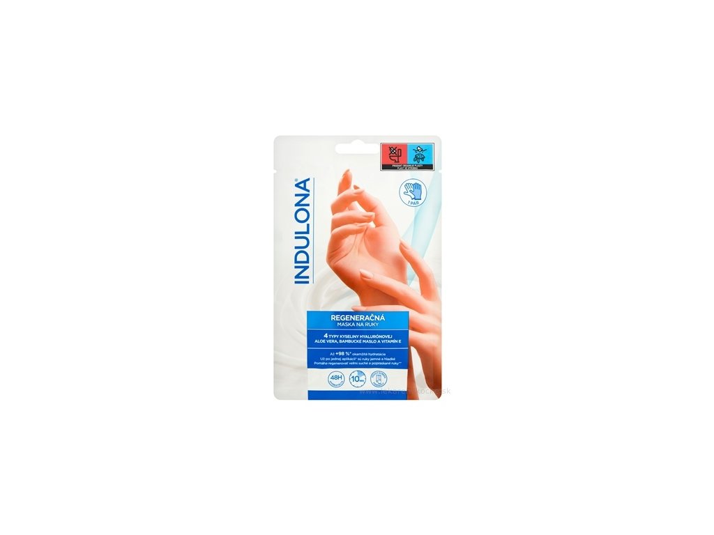 Indulona regenerační maska na ruce, maska na ruce rukavice, hydratace rukou, suché a popraskané ruce, péče o ruce, kyselina hyaluronová ruce, aloe vera ruce, bambucké máslo ruce, kosmetika na ruce