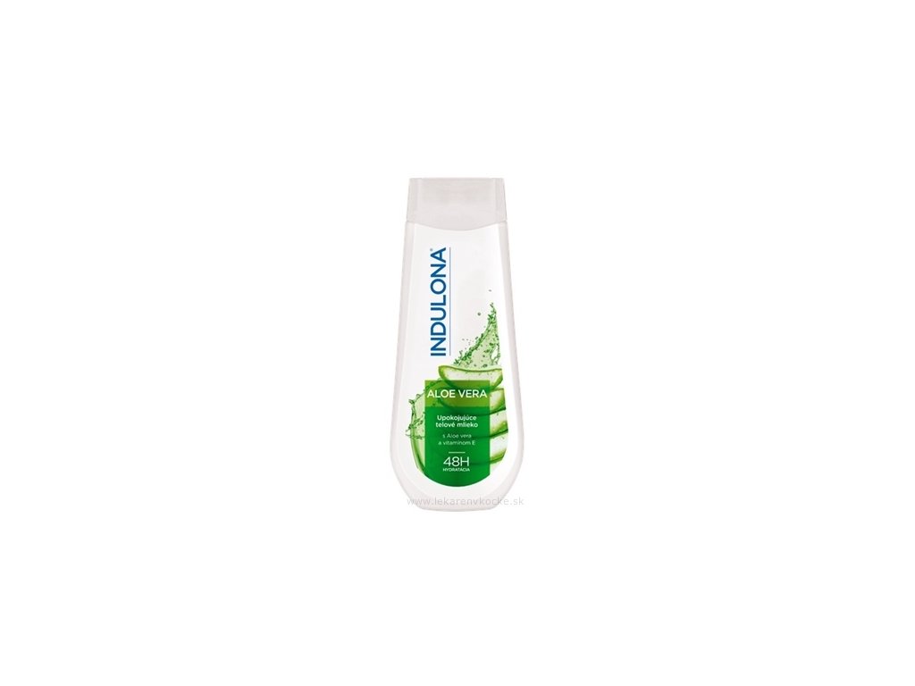 "INDULONA Zklidňující tělové mléko ALOE VERA je obohaceno o Aloe vera, vynikající hydratační látku, která je známá svými uklidňujícími, antioxidačními a hydratačními vlastnostmi. Obsažený vitamín E poskytuje pokožce vaši pokožku a hloubkovou výživu. svěžesti. Pro normální pokožku.