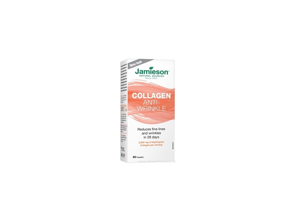 Jamieson Kolagen proti vráskám s klinicky potvrzeným účinkem redukce počtu jemných linií a vrásek za 28 dní, doplňuje hydrolyzovaný kolagen do hlubokých vrstev pokožky (epidermy a dermy), díky čemuž je pokožka pevnější a získá mladistvý vzhled.