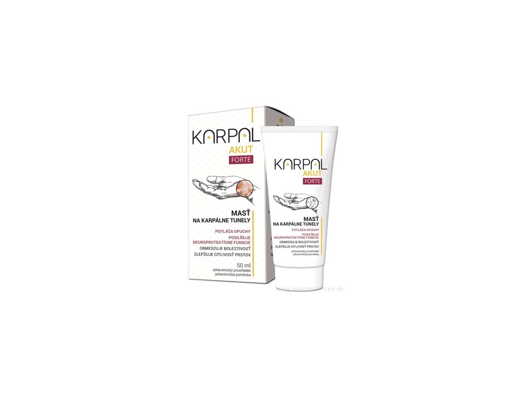 KARPAL AKUT FORTE díky masáži a uklidňujícím rostlinným extraktům (veroniky, přesličky, očíanky a chmele) omezuje bolestivost ruky a zlepšuje citlivost prstů. Díky nově přidanému kostivalu a třezalce dochází k posílení neuroprotektivní funkce a potlačení otoků.
