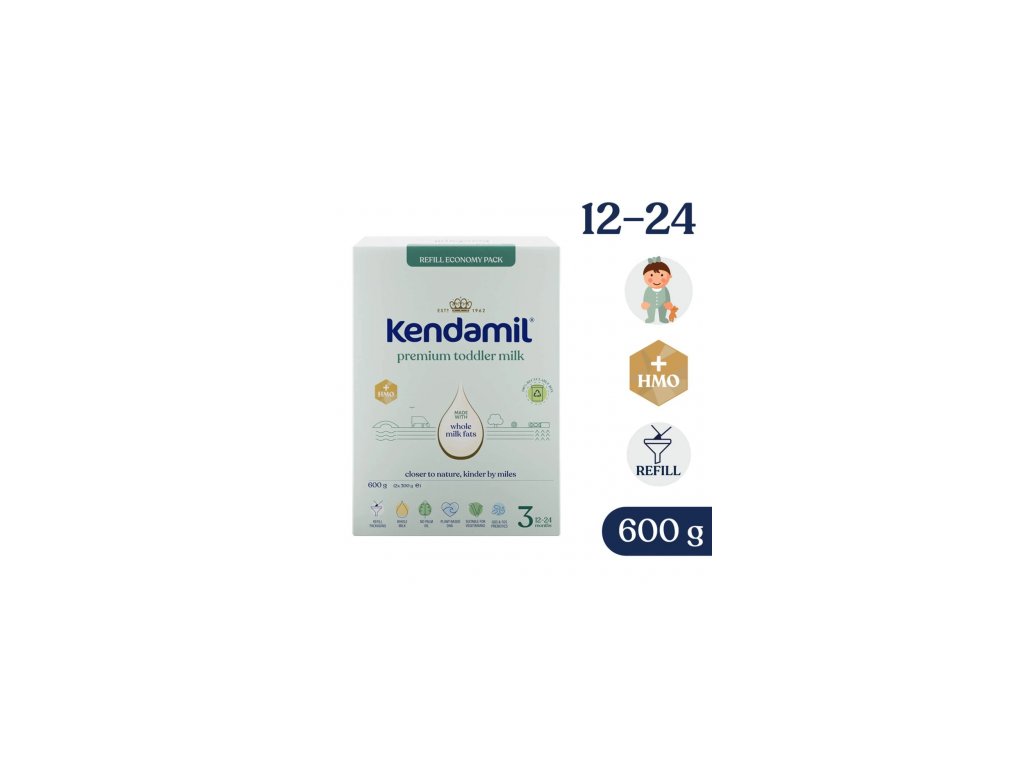 Kojení je nejlepší způsob výživy Vašeho dítěte. KENDAMIL PREMIUM 3 HMO+ je určeno pro výživu malých dětí od ukončeného 12. měsíce a mělo by tvořit pouze součást smíšené a vyvážené stravy malého dítěte. Při krmení z lahvičky zamezte nepotřebnému prodlužování kontaktu dudlíku se zoubky, zvyšujete tím riziko zubního kazu. Pečujte o hygienu dutiny ústní dítěte, především před spaním. Dodržujte pokyny pro přípravu, krmení a skladování, jinak ohrozíte zdraví dítěte. Není určeno pro děti do 12 měsíců.
