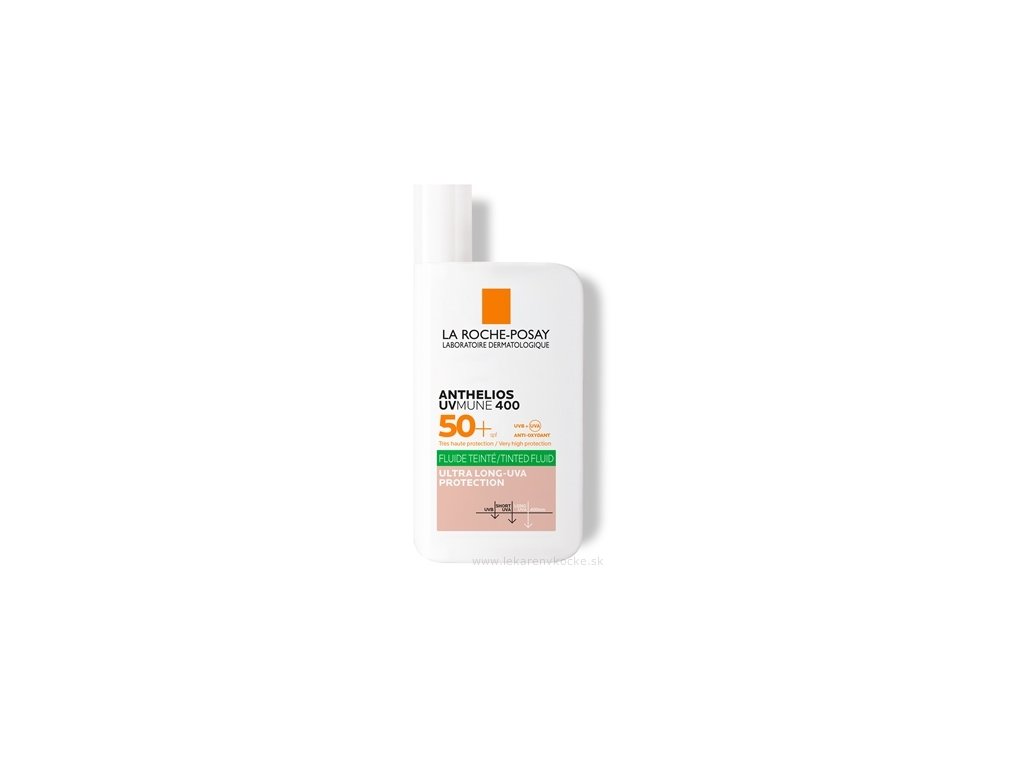 Anthelios UVMUNE 400 OIL CONTROL TÓNOVANÝ FLUID SPF 50+. VELMI VYSOKÁ UVB/UVA OCHRANA, ANTIOXIDAČNÍ OCHRANA. Navržen tak, aby zamezil štípání v očích. Testováno pod dermatologickou kontrolou na citlivé a reaktivní pleti a pleti se sluneční intolerancí. Nekomedogenní. Pro pocit čisté pleti. Poskytuje ochranu před UVB, UVA zářením a hyperpigmentací způsobenou viditelným světlem a oxidačním stresem z infračerveného záření či znečištění. Upozornění: Nadměrná expozice na slunci je nebezpečná. Nevystavujte kojence a malé děti přímému slunečnímu záření. Nezůstávejte na slunci dlouho, ani když používáte ochranný prostředek. Tento produkt nepředstavuje 100% ochranu. Aplikujte bezprostředně před sluneční expozicí. Pro udržení ochrany aplikujte produkt opakovaně v dostatečném množství, zejména při pocení, koupání nebo sušení ručníkem. Snížení množství prostředku značně sníží úroveň ochrany. Při zasažení očí okamžitě důkladně vypláchněte velkým množstvím vody. Zabraňte kontaktu s textiliemi. Pokud již z pumpičky nevychází žádný přípravek, protřepejte přípravek, stiskněte tubu a současně zatlačte na pumpičku.
