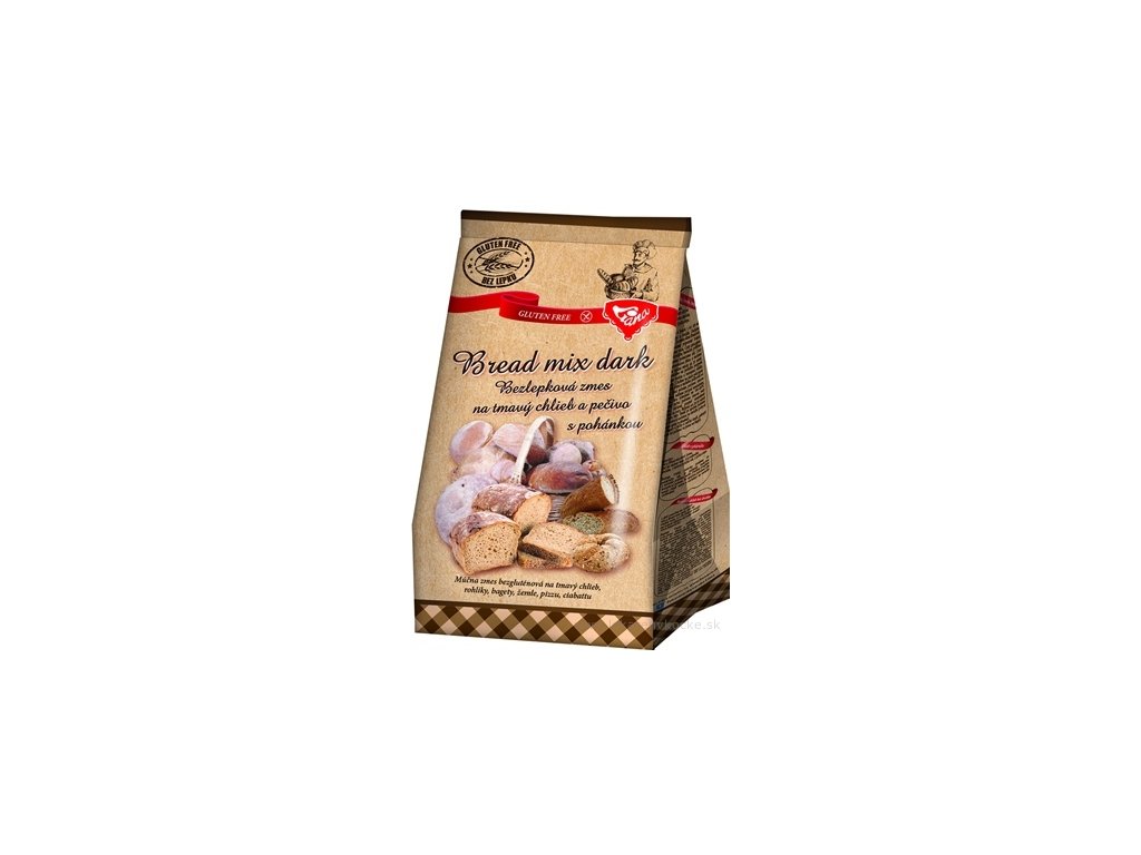 Bezglutenová směs na tmavý chléb a pečivo obsahuje přirozeně bezlepkové suroviny, pohanku a vlákninu.