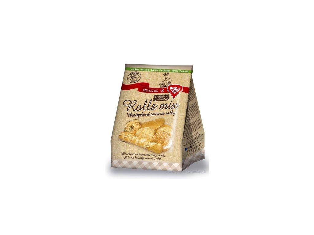 Moučná bezlepková směs na rohlíky, housky, pletenky, kaiserky, ciabattu, stáří. Neobsahuje lepek, cukr, vejce, laktózu, sóju a barviva.