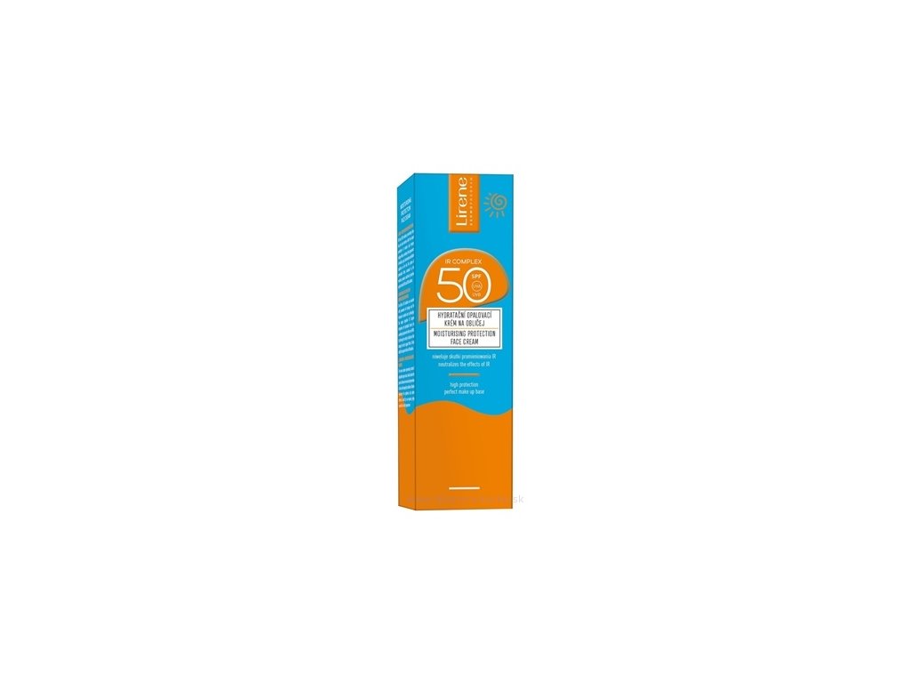 Lirene SUN Hydratační krém na obličej SPF 50+ je vysoce účinný opalovací krém na obličej SPF 50, který kombinuje intenzivní ochranu před slunečním zářením s bohatou péčí o pleť. Tento hydratační krém na obličej s SPF je ideální jako denní krém s UV ochranou, zejména pro osoby se citlivá pokožka. Je to krém na opalování na obličej, který zároveň účinně bojuje proti stárnutí pleti způsobenému UV a IR zářením.