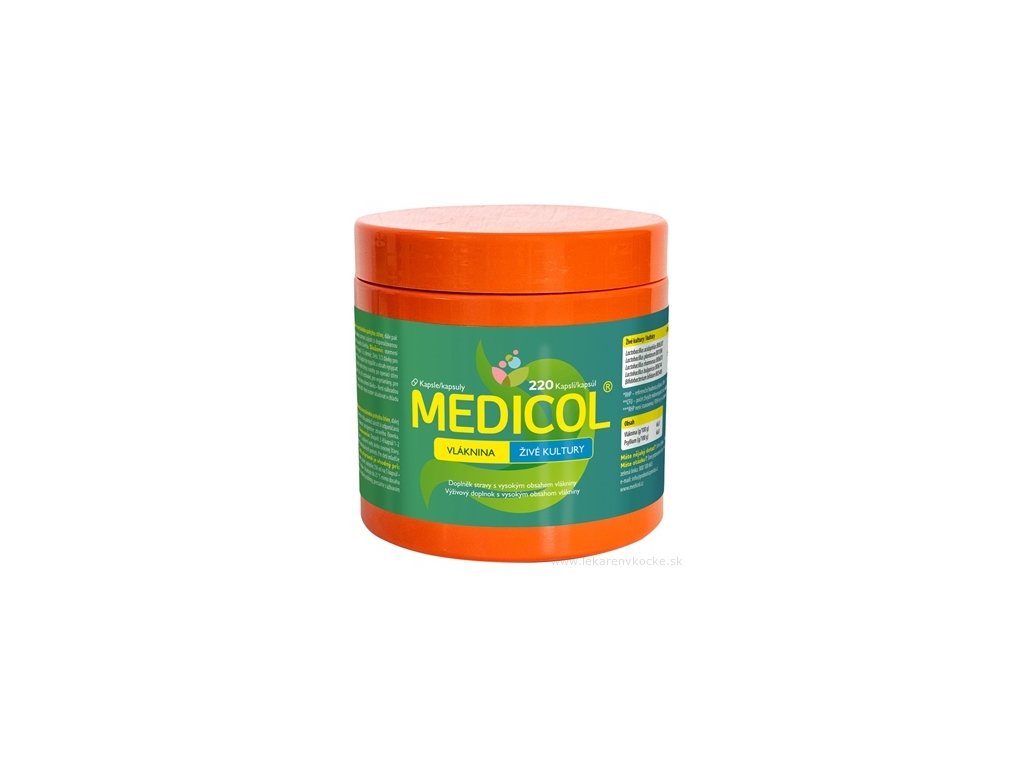 Co je Medicol? Medicol je multi-vlákninový přípravek obsahující jemné psyllium, které přispívá k udržování normálního pohybu střev, dále pak inulin, tedy prebiotickou vlákninu. Vláknina je klíčovou složkou rozmanité a vyvážené stravy. Tyto dvě složky vám mohou pomoci zajistit doporučenou denní dávku vlákniny. Třetí klíčovou složkou je 5 kmenů živých kultur, které se přirozeně vyskytují v trávicím ústrojí zdravého člověka.
