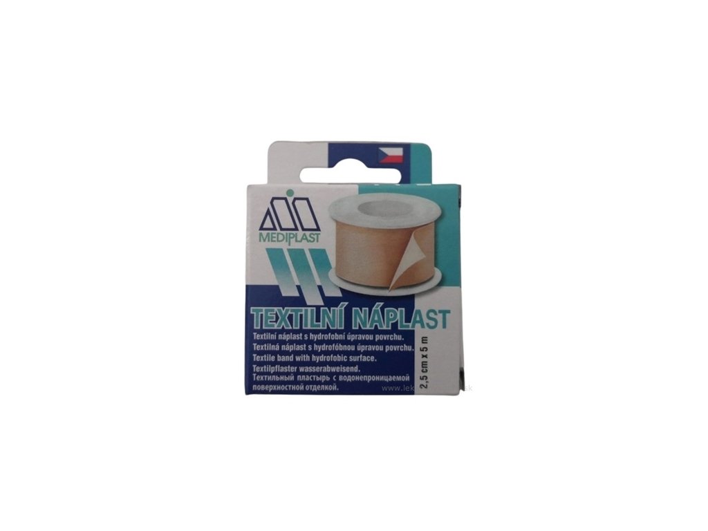 Nedráždivá textilní náplast s hydrofobní úpravou povrchu. Slouží k upevnění obinadel, obvazů a obkladů na ranách.