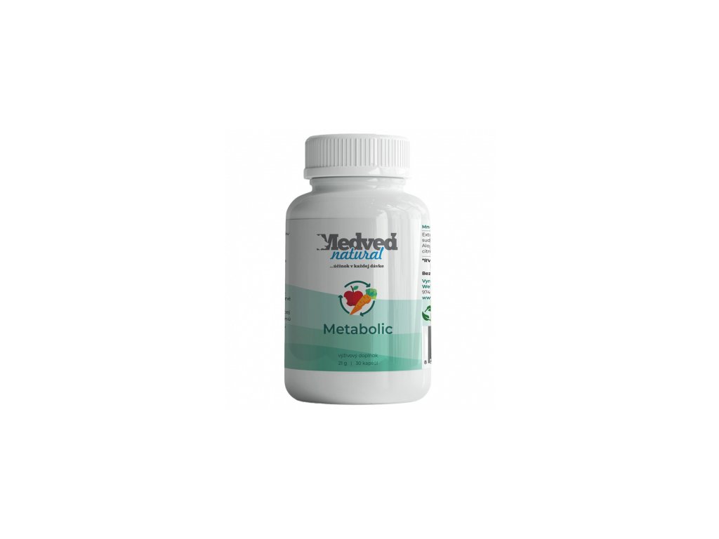 Medvěd natural Metabolic je doplněk stravy určený k podporu metabolismu, řízení hmotnosti a udržování zdravé hladiny cholesterolu a krevního tlaku. Produkt obsahuje patentovaný extrakt z ibišku súdánského (Hibiscus sabdariffa) a verbeny citrónové (Lippia citriodora), které působí synergicky na jeden z klíčových enzymů – AMPK. Tento enzym je znám jako „energetický senzor buněk“ a reguluje tvorbu a spotřebu energie v těle. Aktivace AMPK přirozeně podporuje spalování tuků, zlepšuje využití glukózy a tím přispívá k udržení zdravé tělesné hmotnosti a kardiovaskulárního zdraví.