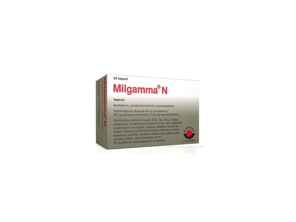 Milgamma N cps mol 50 je lék obsahující kombinaci vitamínů skupiny B – konkrétně benfotiamin (vitamin B1), pyridoxin-hydrochlorid (vitamin B6) a kyanokobalamin (vitamin B12). Tyto vitamíny hrají klíčovou roli při podpoře zdraví nervového systému a jsou nezbytné pro metabolismus a regeneraci nervů. Milgamma N se používá především k léčbě neuropatií (onemocnění nervů), zejména při diabetické nebo alkoholové polyneuropatii, ale také při dalších zánětlivých a bolestivých onemocněních nervů.