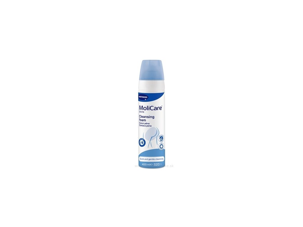 Čistící pěna MoliCare Skin rychle a šetrně čistí pokožku při úniku moči nebo stolice bez použití vody a mýdla. Obsahuje kreatin a pantenol, pH 5,5. Nenarušuje přirozený ochranný obal pokožky, nevysušuje ji a nedráždí. Tím minimalizuje také případné nežádoucí kožní projevy, které často vznikají při inkontinenci moči a stolice. Čistící pěna plně nahrazuje mytí mýdlem a vodou. Navíc je její použití přímo na lůžku pro ošetřující osobu jednodušší. Dokáže účinně neutralizovat pachy a příjemně a svěže voní. Příjemně lehká pěna se snadno rozpouští na kůži a poté se roztírá. Dermatologicky testováno na citlivou pokožku.