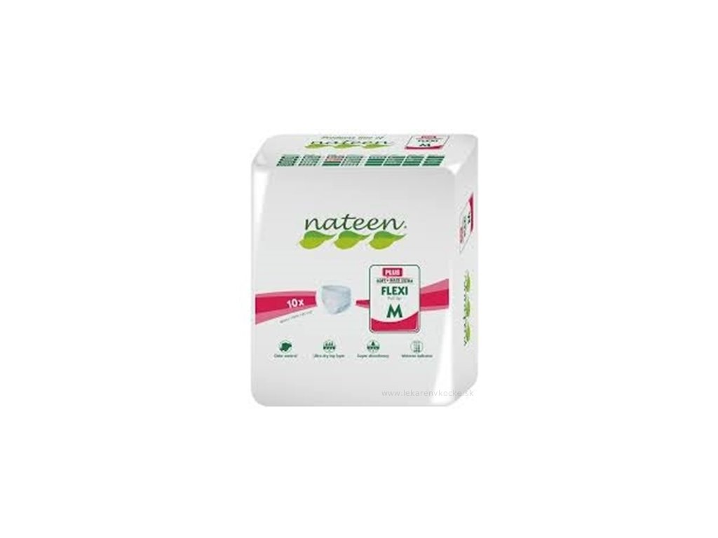 Kalhotky plenkové nateen FLEXI PLUS M jsou anatomicky tvarované, vhodné pro těžkou inkontinenci moči a stolice. Jsou určeny pro mobilní i imobilní pacienty. Zabezpečují pocit sucha, trojité absorbční jádro zvyšuje schopnost absorbovat tekutiny a zápach, jsou prodyšné, vyrobeny z netkané nealergenní textilie.