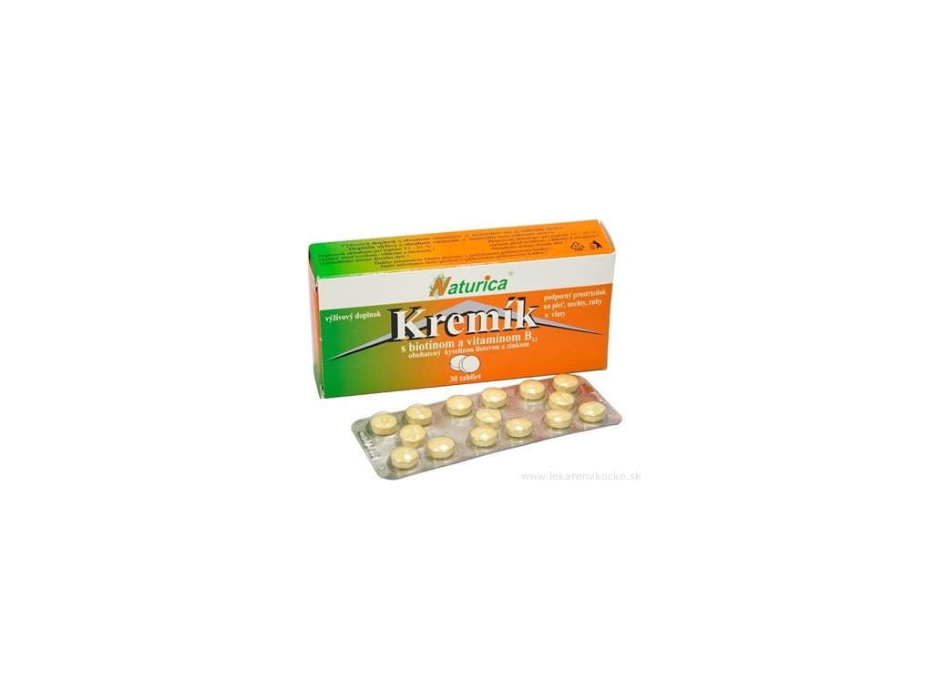 Doplněk stravy s obsahem křemíku, biotinu, vitamínu C, vitamínu B12, kys. listové a zinku.