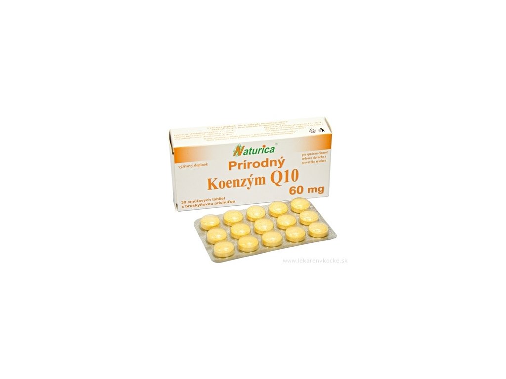 Doplněk stravy s obsahem koenzymu Q10. Cucavé tablety s broskvovým aroma a obsahem náhradního sladidla aspartam.