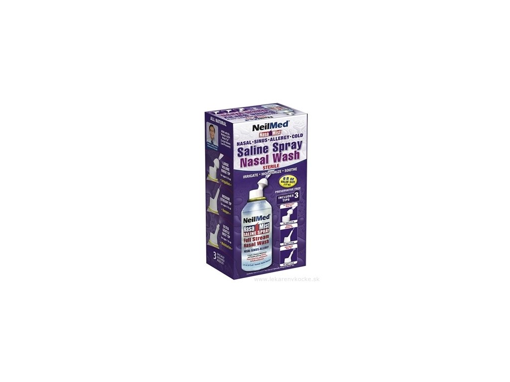 NasaMist All-In-One je přírodní, solný roztok pro hydrataci nosu a pro jeho oplach. Solný sprej
