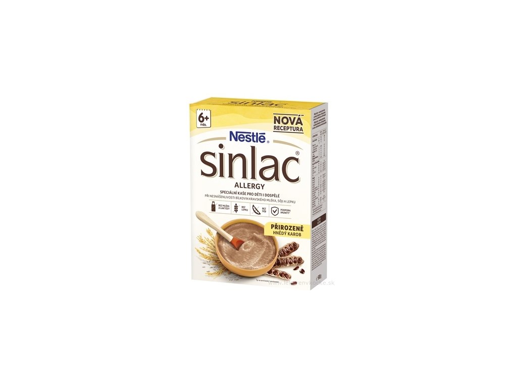 Alergie na bílkoviny kravského mléka a sójové bílkoviny se často vyskytují již v kojeneckém a dětském věku. Nejdůležitějším krokem při prevenci a zmírňování alergií podmíněných výživou je důsledně se vyhýbat takto zatíženým potravinám či jednotlivým složkám a zároveň dbát na původ bílkovin ve stravě. Sinlac obsahuje pouze rostlinné bílkoviny – z rýže a karobu. Kaše je vhodná jak při zvýšeném riziku vzniku alergií, tak is prokázanou alergií.