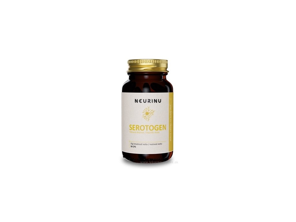 NEURINU® Serotogen, je komplexní výživový doplněk připravený pro lidi, kteří touží po dobré náladě a pozitivní životní energii. Serotogen je vyvinut na bázi kombinace mnoha účinných látek podílejících se na tvorbě neurotransmiterů. Jeho hlavní složkou je výtažek ze semen Griffonie simplicifolie s přirozeným obsahem 5-HTP (5-hydroxytryptofanu). Tato molekula je v kombinaci s vitamíny skupiny B a některými minerály, přímým prekurzorem tvorby serotoninu, který je slangově nazýván také hormonem štěstí.