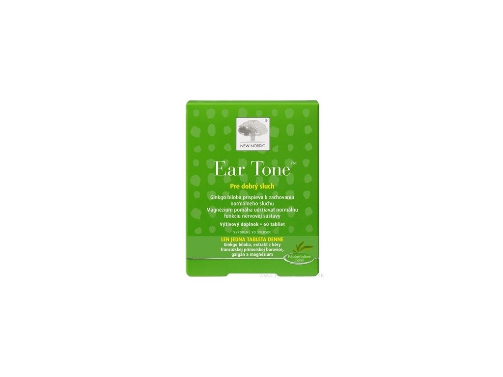 New Nordic Ear Tone je kvalitní výživový doplněk ve formě tablet, speciálně vyvinutý pro každodenní užívání. Obsahuje kombinaci účinných rostlinných extraktů – ginkgo biloba, extrakt z kůry francouzské přímořské borovice, galgan (Alpinia galanga) – spolu s důležitým minerálem hořčíkem, který pomáhá udržovat přirozenou rovnováhu elektrolytů v těle.