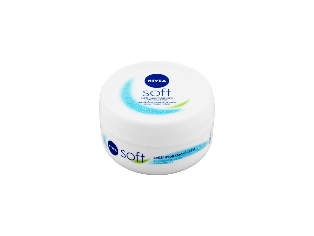 Hydratační krém Nivea soft je vhodný pro péči o tělo, obličej a ruce. Rychle se vstřebávající složení s vitamínem E a jojobovým olejem dodává pokožce intenzivní hydrataci, osvěžuje ji a zanechává hedvábně jemnou.