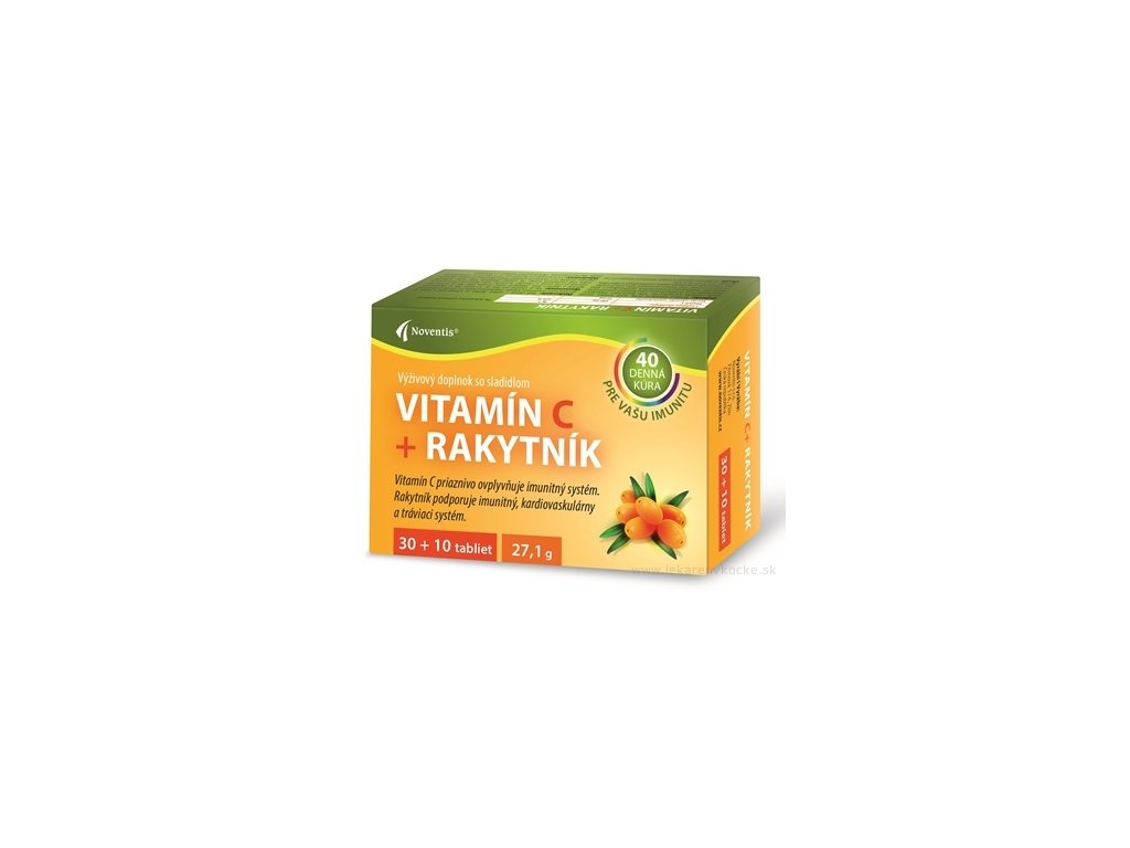 1 tableta obsahuje: Vitamin C 500 mg (kyselina askorbová) (625 % referenční výživové hodnoty) a Extrakt rakytníku řešetlákového 50 mg.