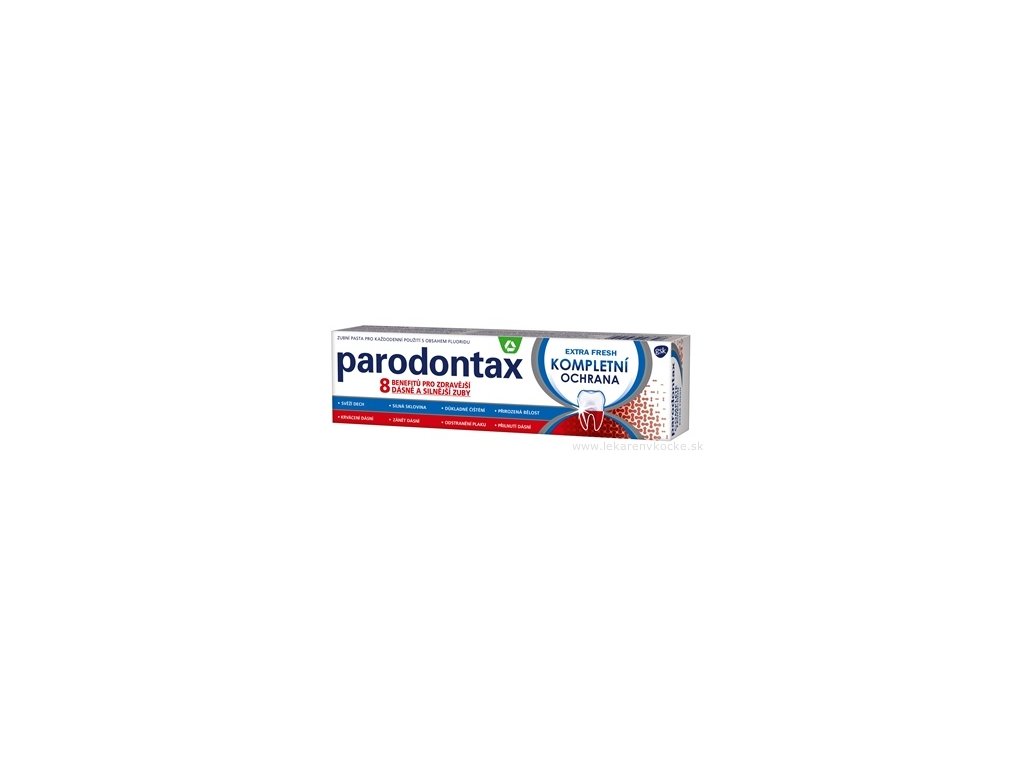 Parodontax Kompletní ochrana Extra Fresh je více než běžná zubní pasta. Kombinuje účinnost naší nejpokročilejší zubní pasty pro zdravé dásně se složkami, které pomáhají udržet silné zuby. Přináší 8 benefitů pro zdravější dásně a silnější zuby.