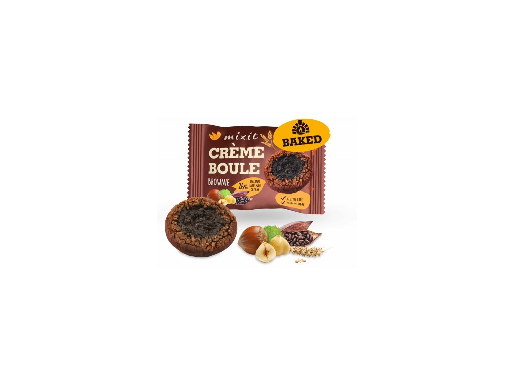 crème boule, pečená crème boule, crème boule brownie, Mixit brownie, bezlepkový snack, bez palmového oleje, čokoládový koláček, brownie do ruky, lískooříškový krém, Piemont lískové oříšky, vysoký obsah vlákniny