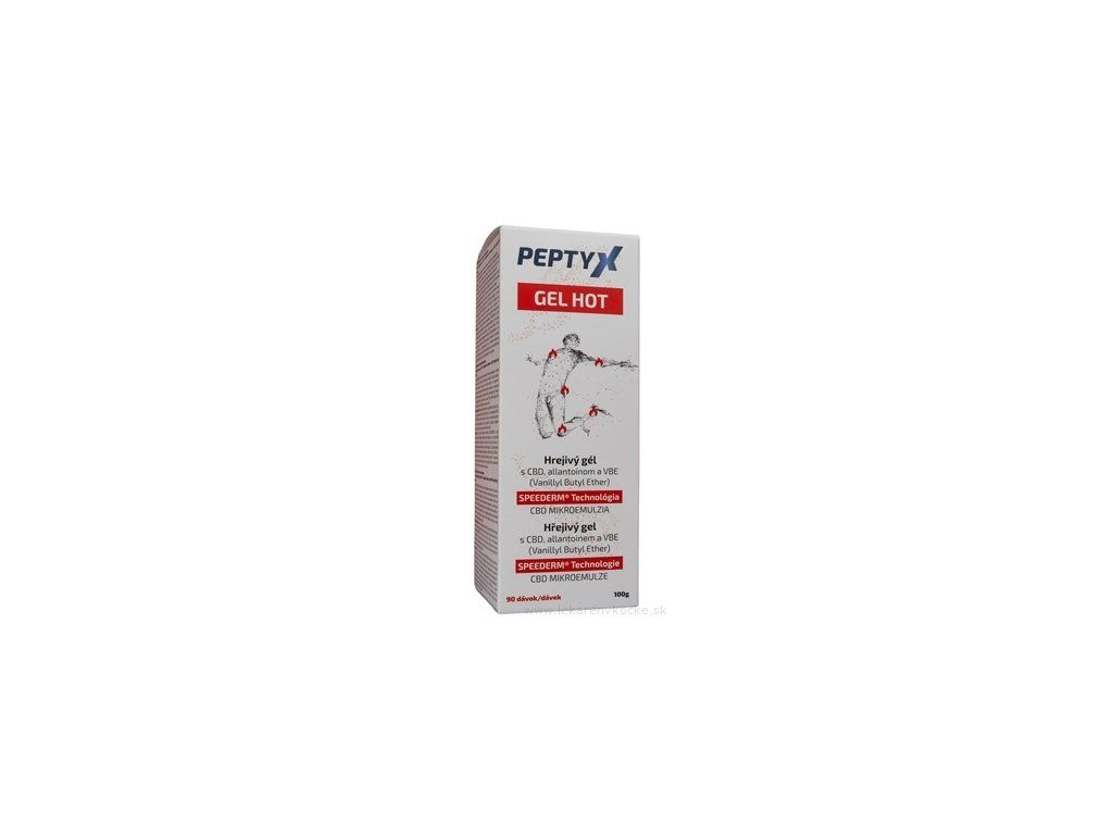 PEPTYX GEL HOT hřejivý emulzní gel obohacený aktivním kanabinoidem s obsahem allantoinu aktivní látky nacházející se v rostlině Kostival, CBD v mikroemulzi a VBE - přírodní vanillyl butylether.