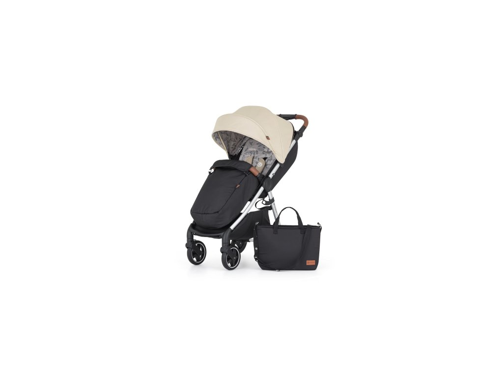 - Konstrukci kočárku ve stříbrné barvě s madlem a rukojetí v hnědé eko-kůži