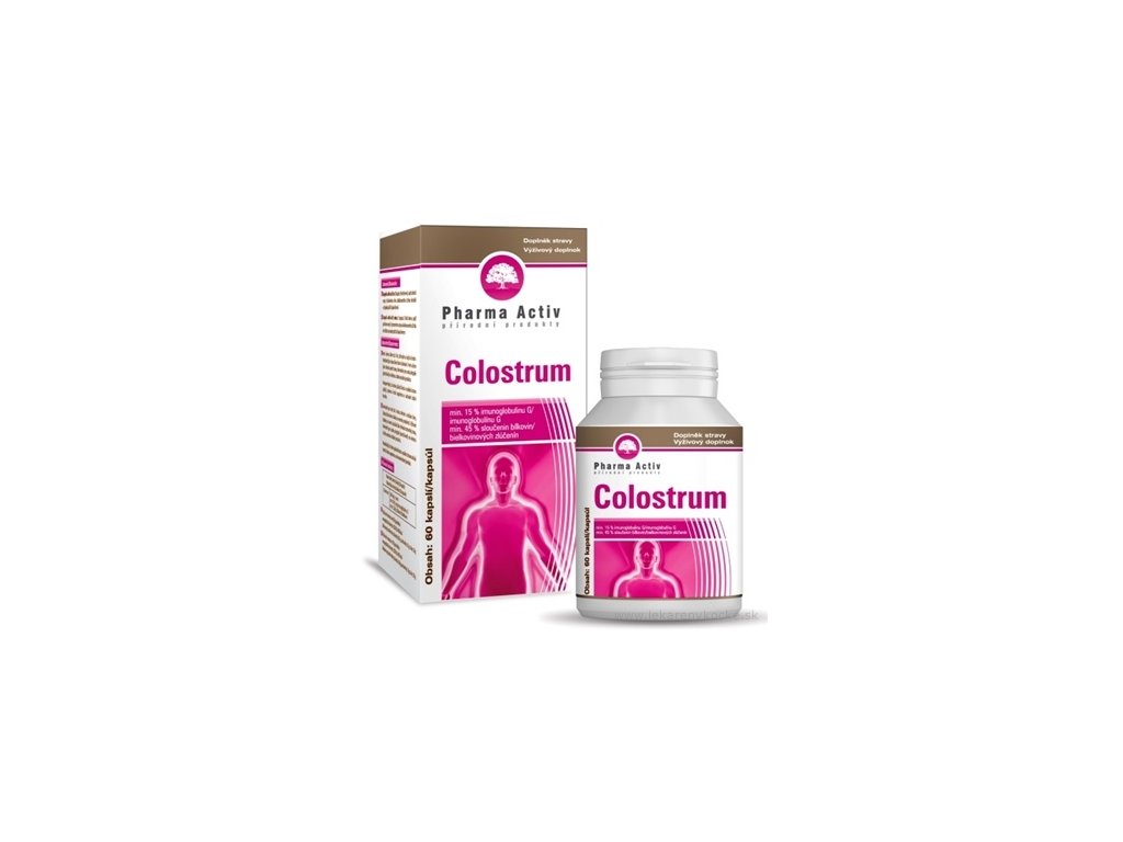 Pharma Activ Colostrum je doplněk stravy, který obsahuje kravské mlezivo z prvního kravského mléka, v tom min. 16,22% imunoglobulinu G a min. 64,5% bílkovinných sloučenin.