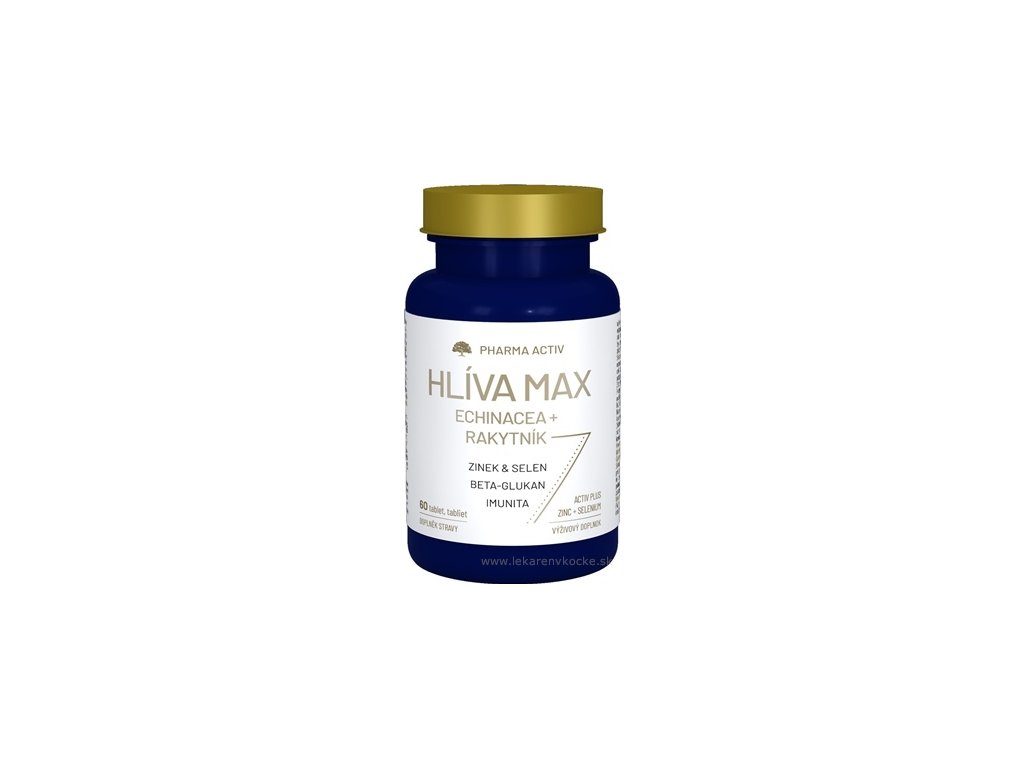 hlíva ústřičná, Pharma Activ HLIVA MAX, echinacea, rakytník, betaglukany, zinek, selen, tablety, doplněk stravy, imunita, oxidační stres, přírodní extrakty