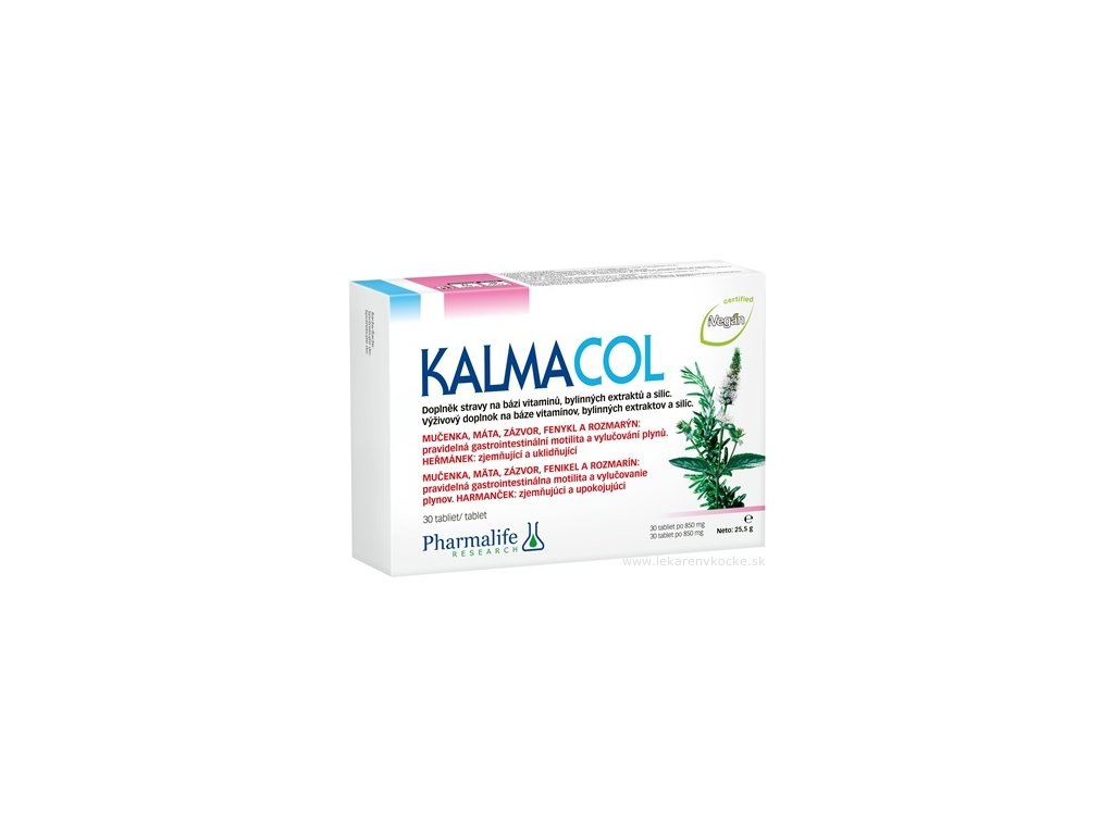 Pharmalife Kalmacol je kvalitní výživový doplněk ve formě 30 tablet, navržený pro podporu přirozeného komfortu trávicího trakt-ideální při problémech s podrážděným střevem (IBS), spastické kolitidě, nadýmání a plynnatosti. S unikátní „food-resistant retard“ formulí, která zajistí postupné uvolňování účinných látek a efektivní úlevu. Jedna tableta obsahuje 850 mg účinných složek, balení váží přibližně 25,5g.