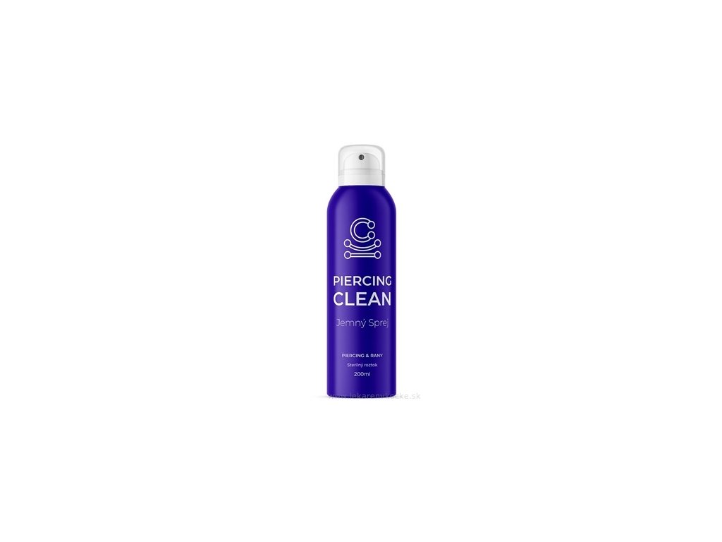 PIERCING CLEAN Jemný Sprej je zdravotnická pomůcka určená k bezpečnému čištění piercingu, oplachování a mytí ran na poraněném povrchu kůže. Tento sterilní roztok pomáhá udržovat čistotu a vlhkost rány, čímž podporuje přirozený průběh hojení. Díky jednoduché aplikaci bez doteku je ideální pro každodenní hygienu nově vytvořeného i stávajícího piercingu, jakož i drobných ran či odřenin.