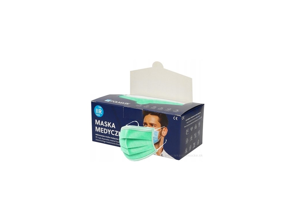 POLMASK Zdravotnické rouško zelené, typ IIR – jednorázová ochrana nejvyšší třídy