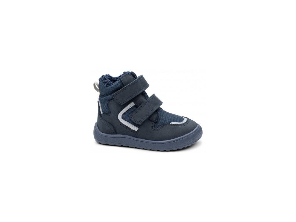 Vyrobeny jsou z kombinace broušené kůže a odolného textilního materiálu v tmavě modré barvě, která působí elegantně a prakticky zároveň. Ochranná membrána PROTEX účinně brání pronikání vlhkosti a chladu, takže dětské nožky zůstávají suché i při sněhu či dešti.
