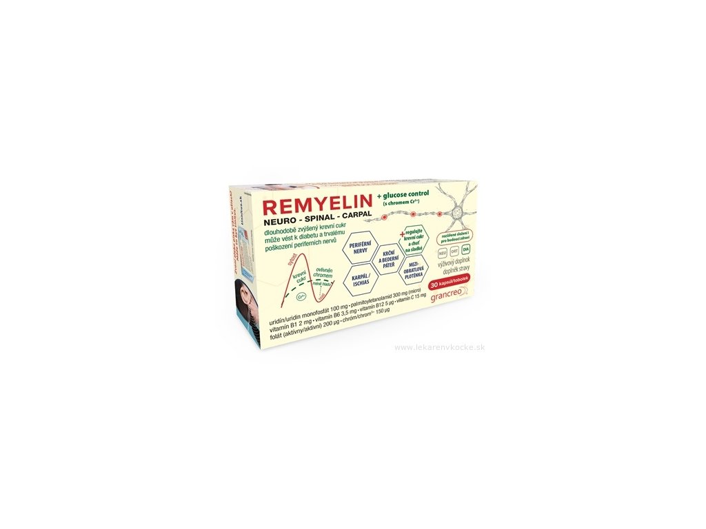 REMYELIN cps představuje vysoce účinný výživový doplněk, speciálně vyvinutý pro podporu správné funkce nervového systému. Je ideální pro lidi trpící nedostatkem vitamínů skupiny B, který může vést k neurologickým problémům jako jsou bolesti zad, křížů, karpálního tunelu, sedacího nervu či poruchy funkce meziobratlových plotének. Tento doplněk pomáhá nejen zmírnit nepříjemné projevy, ale zároveň podporuje regeneraci nervových vláken a celkové neurologické zdraví.