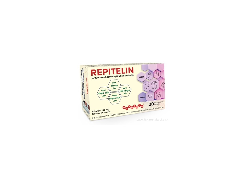 repitelin, doplněk na kůži a nehty, podpora regenerace kůže, šišák bajkalský, doplněk stravy na ekzém a opar, zdravá pokožka, doplněk po slunění, baicalin, baikal skullcap, regenerace kůže po herpesu