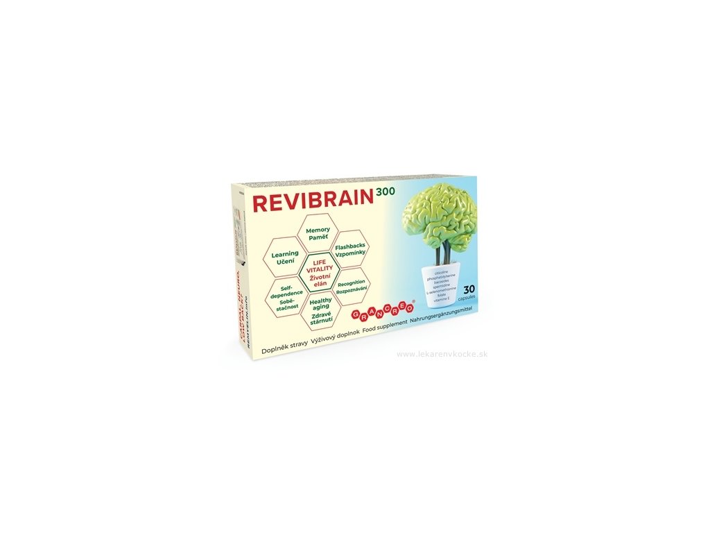 Revibrain je doplněk výživy pro lidi, kteří chtějí aktivně podpořit paměť, koncentraci a kognitivní schopnosti. Díky kombinaci citikolinu, bakopy, fosfatidylserinu a antioxidantů jako vitamín E a selen pomáhá chránit mozkové buňky, snižovat únavu a podporuje správnou funkci psychiky. Je vhodný pro seniory, studenty i lidi se zvýšeným psychickým zatížením, kteří chtějí udržet mozek v optimální kondici.