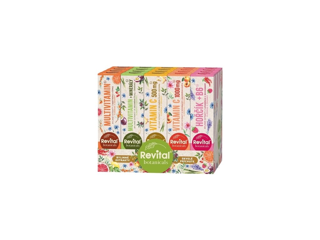 Produkty v boxu (každé po 4 balení): VITAMIN C 500 mg, VITAMIN C 1000 mg, MAGNÉSIUM + B6, MULTIVITAMIN, MULTIVITAMIN + MINERÁLY.