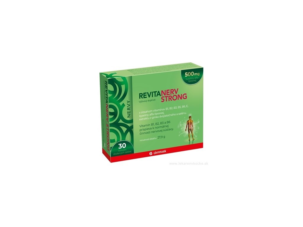 REVITANERV STRONG je výživový doplněk ve formě potahovaných tablet, určený k doplnění běžné stravy o vitamíny a další aktivní látky. Obsahuje kombinaci kyseliny alfa-lipoové, standardizovaného extraktu Ginkgo biloba, vitamínů skupiny B, vitamínu E a selenu.
