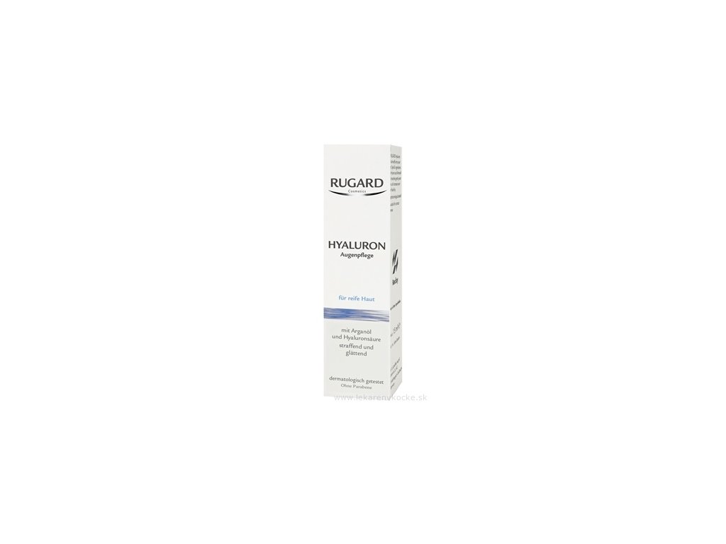 RUGARD Hyaluron oční krém hydratuje a osvěžuje pleť. Účinně bojuje proti prvním příznakům stárnutí pleti, zmírňuje kruhy a otok pod očima. Arganový olej ošetřuje pleť a udržuje ji hebkou. Kyselina hyaluronová zlepšuje elasticitu pleti a viditelně redukuje vrásky. Dermatologicky testováno.
