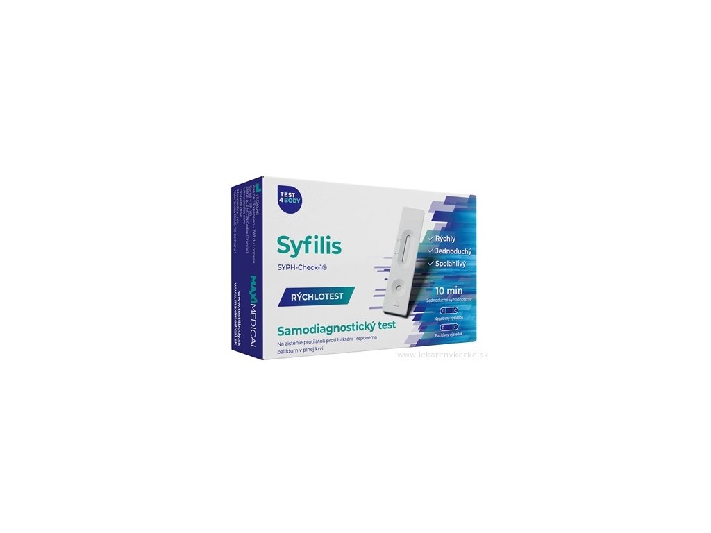 Test4Body Rychlotest Syfilis (SYPH-CHECK-1®) je spolehlivá samodiagnostická pomůcka určená pro rychlou a diskrétní detekci protilátek proti bakterii Treponema pallidum, která způsobuje pohlavně přenosné onemocnění syfilis. Tento imunologický rychlotest umožňuje snadné testování z kapky krve z prstu v pohodlí domova a poskytuje výsledek již do 10 minut.
