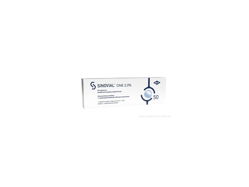 SINOVIAL® ONE 2,0% je zdravotnická pomůcka určená k integraci synoviální tekutiny, která umožňuje obnovit fyziologické a reologické vlastnosti kloubů postižených artrózou. SINOVIAL® ONE 2,0% v kloubu snižuje bolest a podporuje obnovu související pohyblivosti kloubů a šlach, přičemž působí pouze v synoviální dutině, do které se injekčně podává.
