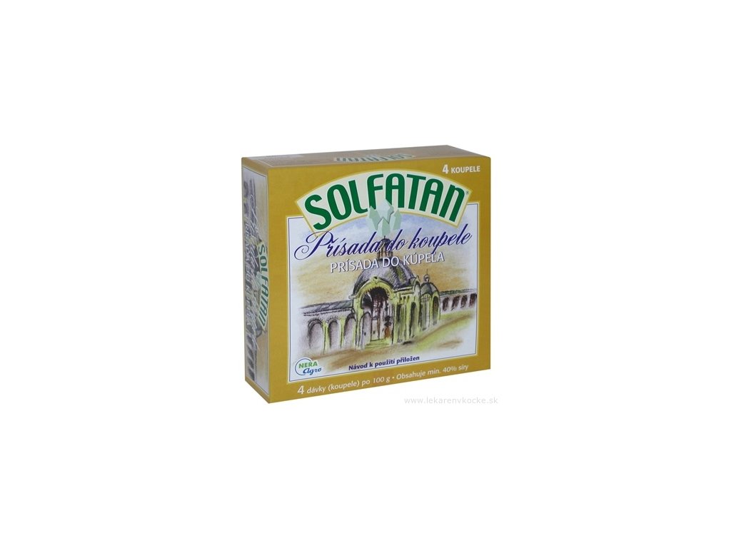 Jako hlavní složku obsahuje síru ve speciální modifikaci s přísadou specificky účinných látek. Je vhodným doplňkem do lázní, ve kterých zlepšuje jejich účinek díky všeobecně známým vlastnostem síry. Předností Solfatanu je jeho snadné a čisté použití. Solfatanový koupel mléčné barvy nevylučuje nepříjemný zápach po sirovodíku.
