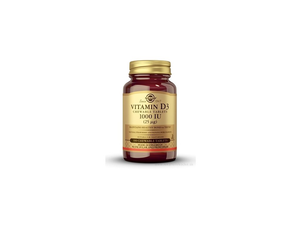 Solgar Vitamin D3 1000 IU 100 žvýkacích tablet jahoda a banán
