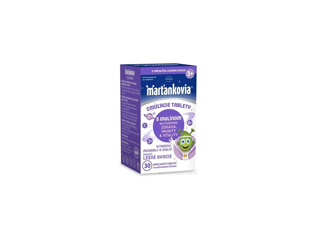 Doplněk stravy, žvýkací tablety s příchutí lesního ovoce. S obsahem rozpustné vlákniny inulinu, vitamínů a minerálů pro každodenní podporu imunity.