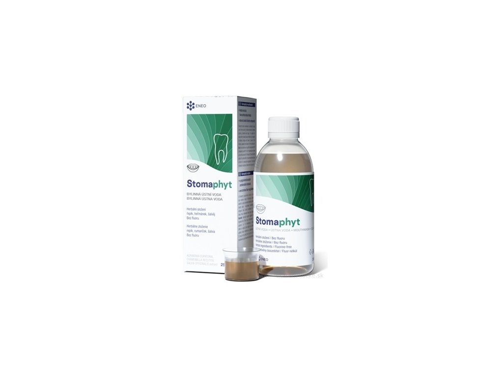 Bylinná ústní voda Stomaphyt je určena ke každodenní péči o ústní dutinu. Obsahuje extrakty řepíku lékařského, heřmánku pravého a šalvěje lékařské. Je vhodná pro osoby se zvýšenou tvorbou povlaku, nositelů zubních protéz, můstků a korunek. Vyniká