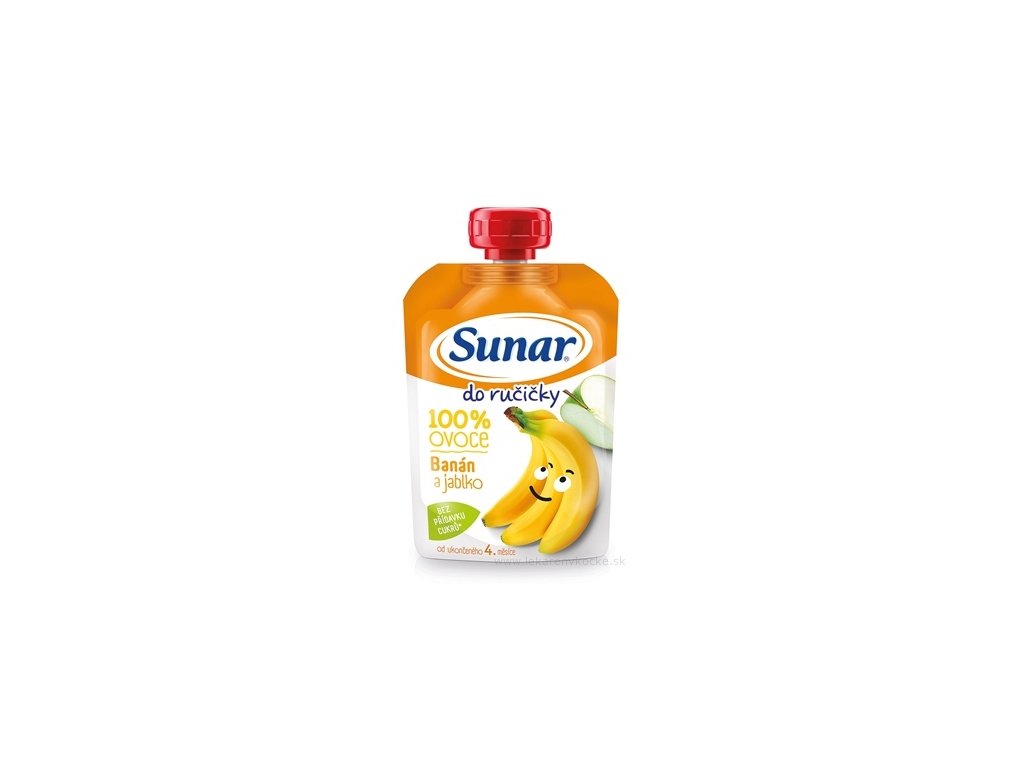 Sunar ovocné příkrmy jsou důležitou součástí pestrého jídelníčku dítěte. Jsou vyrobeny z dobře vyzrálého, vysoce kvalitního a pečlivě kontrolovaného ovoce. Sunar Do ručičky jablko banán 100% ovoce. Pasterizovaný smíšený jablečnobanánový příkrm pro kojence a malé děti od ukončeného 4. měsíce.