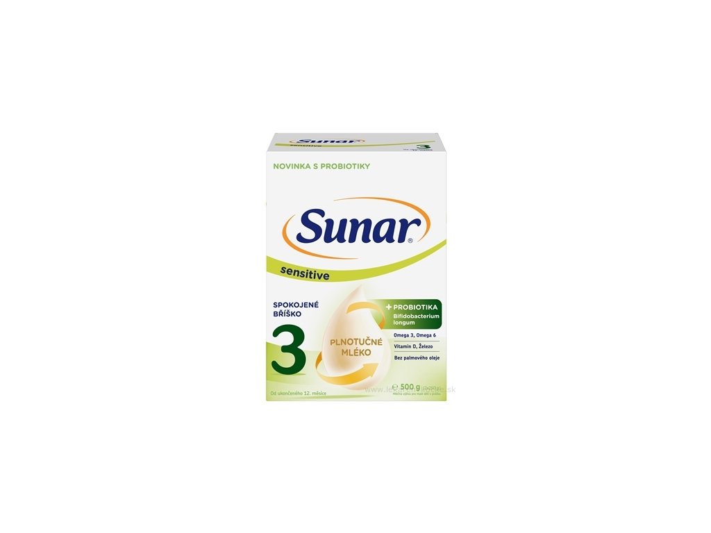 Sunar Sensitive 3 je mléčná výživa s probiotiky pro děti od ukončeného 12. měsíce, určená pro citlivé bříško vašeho děťátka. Jedná se o unikátní recepturu po vzoru mateřského mléka s obsahem probiotik (Bifidobacterium longum).
